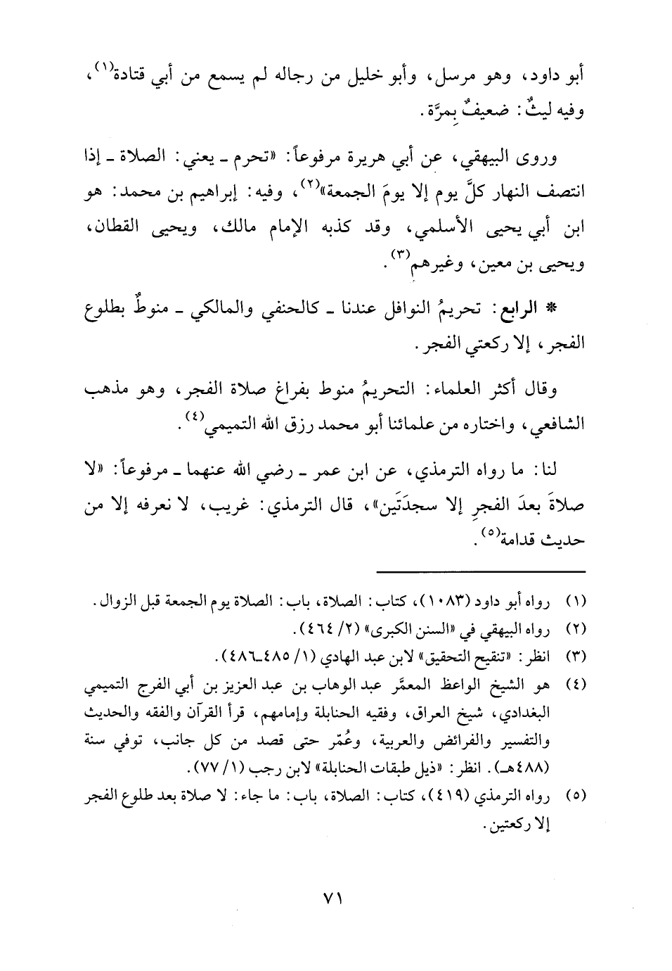 (٥) رواه الترمذي (٤١٩)، كتاب: الصلاة، باب: ما جاء: لا صلاة بعد طلوع الفجر إلا ركعتين.