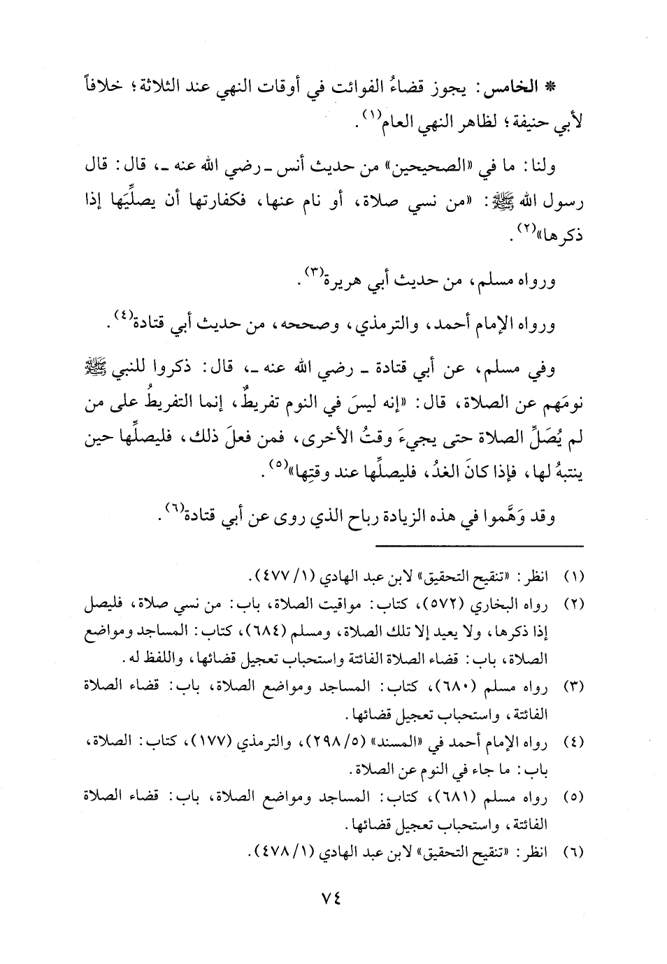 (٥) رواه مسلم (٦٨١)، كتاب: المساجد ومواضع الصلاة، باب: قضاء الصلاة الفائتة، واستحباب تعجيل قضائها.