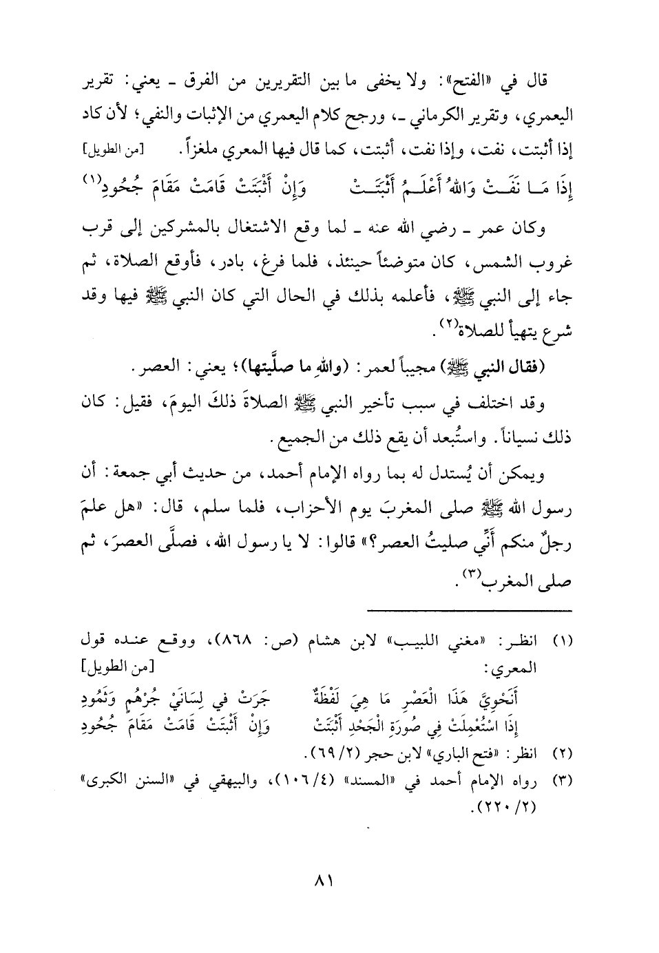 (١) انظر: "مغني اللبيب" لابن هشام (ص: ٨٦٨)، ووقع عنده قول المعري: [من الطويل]