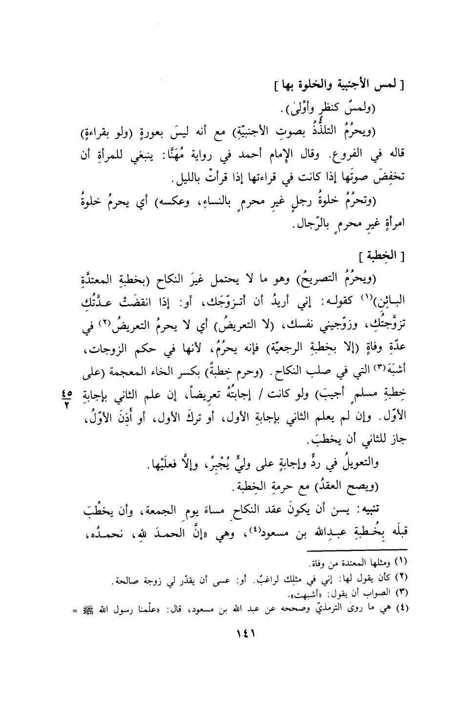 تنبيه: يسن أن يكونَ عقد النكاحِ مساءَ يوم الجمعة، وأن يخطُبَ قبلَه بِخُطبةِ عبدِ الله بن مسعود (¬4)، وهي "إنَّ الحمدَ لله، نحمدُه،