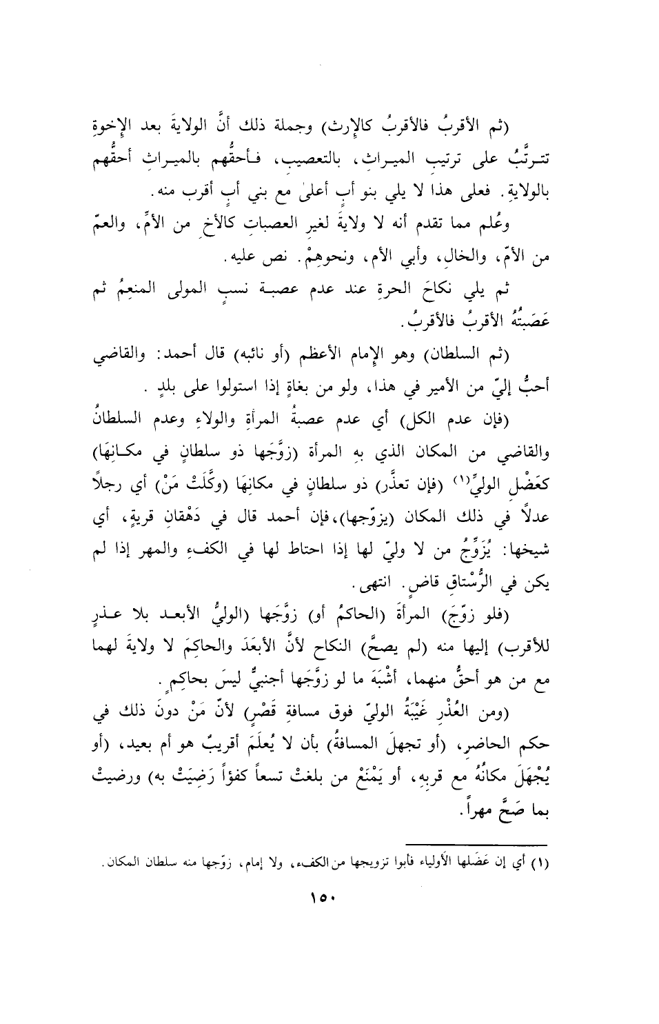 (فإن عدم الكل) أي عدم عصبةُ المرأةِ والولاءِ وعدم السلطانُ والقاضي من المكان الذي بهِ المرأة (زوَّجَها ذو سلطانٍ في مكانِهَا) كعَضْلِ الوليِّ (¬1) (فإن تعذَّر) ذو سلطانٍ في مكانِهَا (وكَّلَتْ مَن) أي رجلاً عدلاً في ذلك المكان (يزوّجها)، فإن أحمد قال في دَهْقانِ قريةٍ، أي شيخها: يُزَوِّجُ من لا وليّ لها إذا احتاط لها في الكفءِ والمهر إذا لم يكن في الرُّسْتاقِ قاضٍ. انتهى.