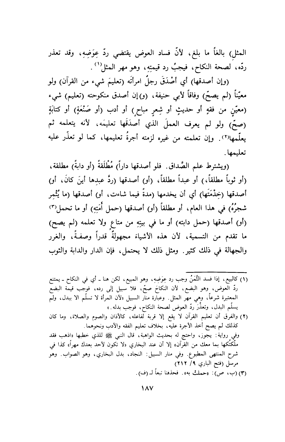 (¬1) كالبيع، إذا فسد الثَّمَنُ وجب رد عِوَضِهِ، وهو المبيع، لكن هنا -أي في النكاح- يمتنع ردّ العوض، وهو البضع، لأن النكاحَ صحّ، فلا سبيل إلى رده، فوجب قيمة البضع المعتبرة شرعاً، وهي مهر المثل. وعبارة منار السبيل "لأن المرأة لا تسلم إلا ببدل، ولم يسلّم البدل، وتعذَّرَ ردّ العوض لصحة النكاح، فوجب بدله."