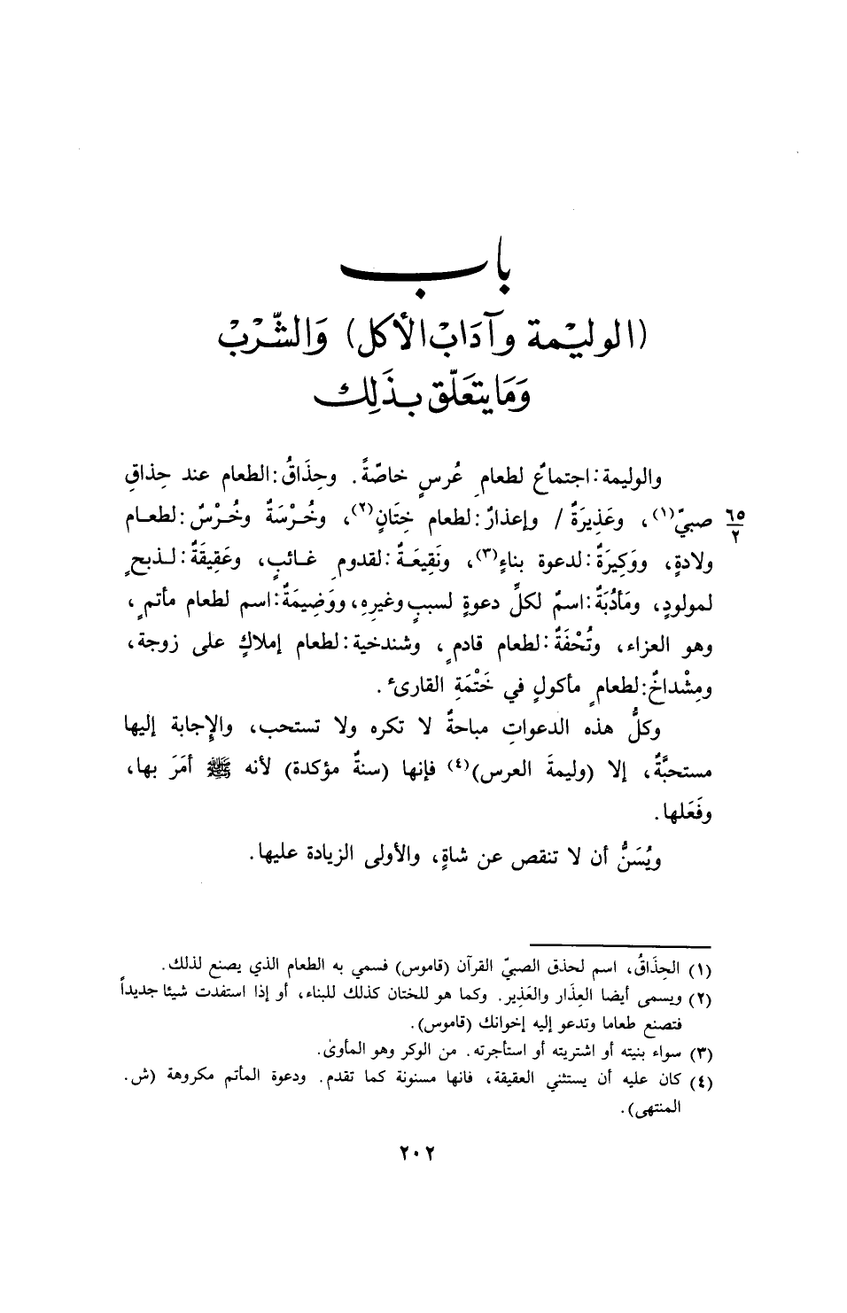 باب (الوليمة وآدَاب الأكل) وَالشّرب وَمَا يتعَلّق بذَلِك