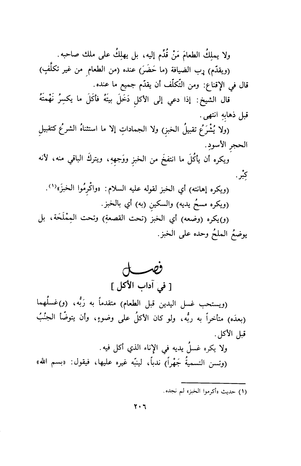 قال الشيخ: إذا دعي إلى الأكلِ دَخَلَ بيتَهُ فأكَلَ ما يكسِرُ نَهْمتَهُ قبل ذهابِهِ انتهى.