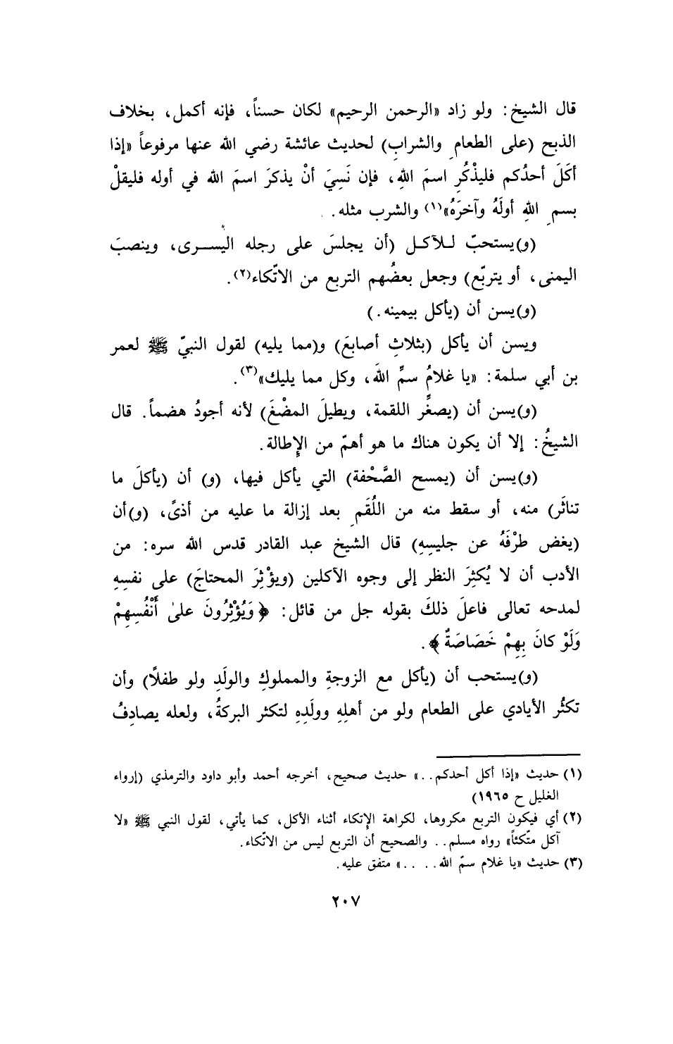 (¬1) حديث "إذا أكل أحدكم .. " حديث صحيح، أخرجه أحمد وأبو داود والترمذي (إرواء الغليل ح 1965)