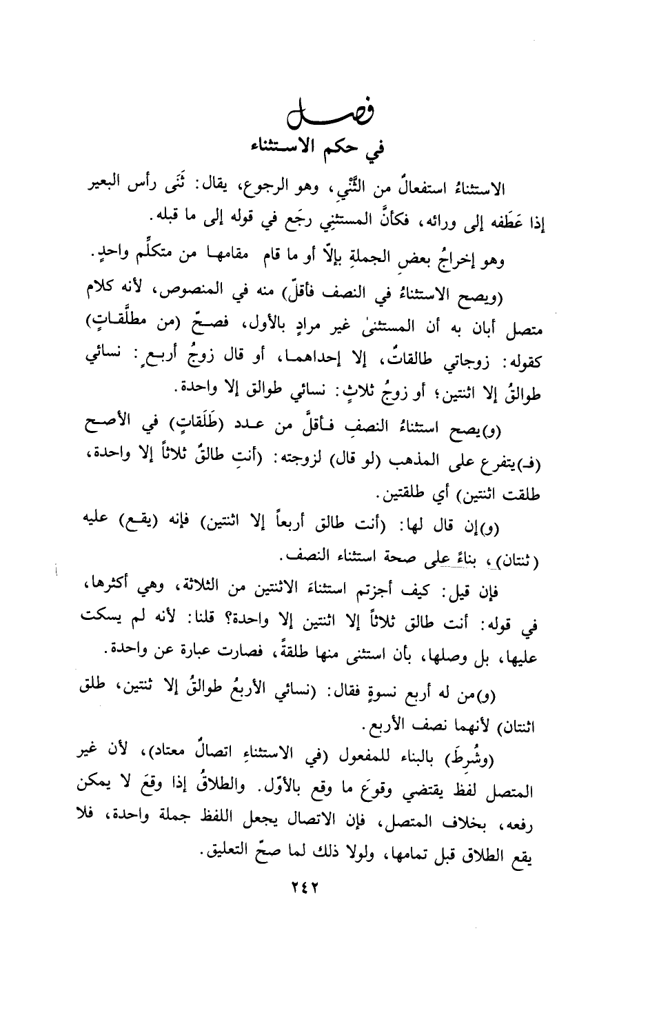 فصل في حكم الاستثناء