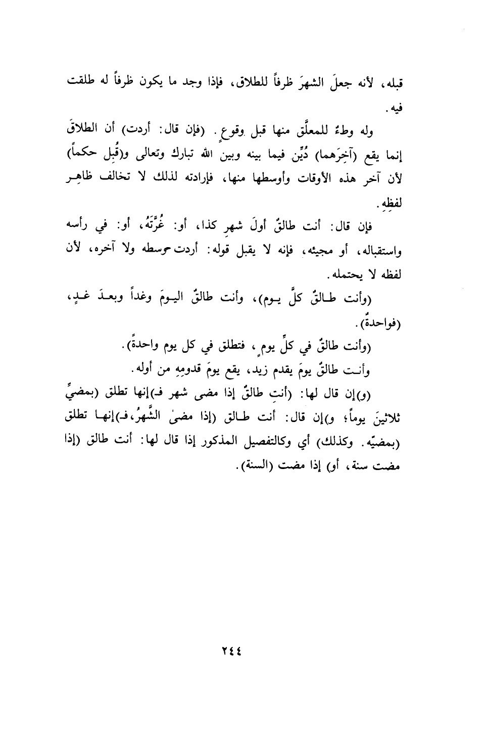 (وأنت طالقٌ كلَّ يوم)، وأنت طالقٌ اليومَ وغداً وبعدَ غدٍ، (فواحدةٌ).