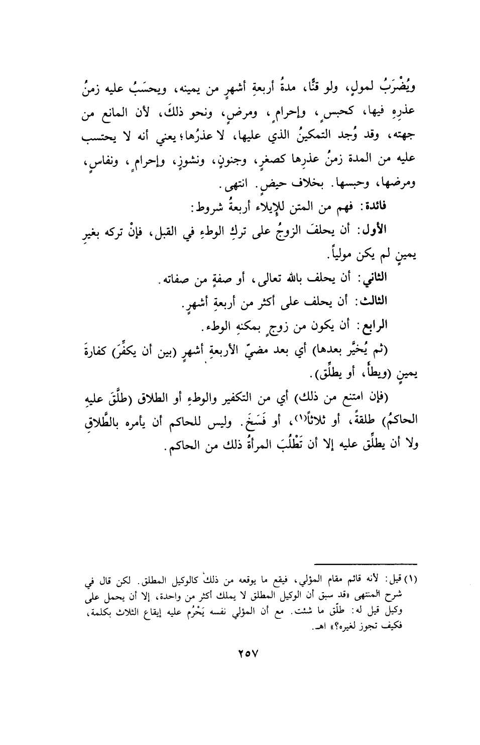 فائدة: فهم من المتن للِإيلاء أربعةُ شروط: