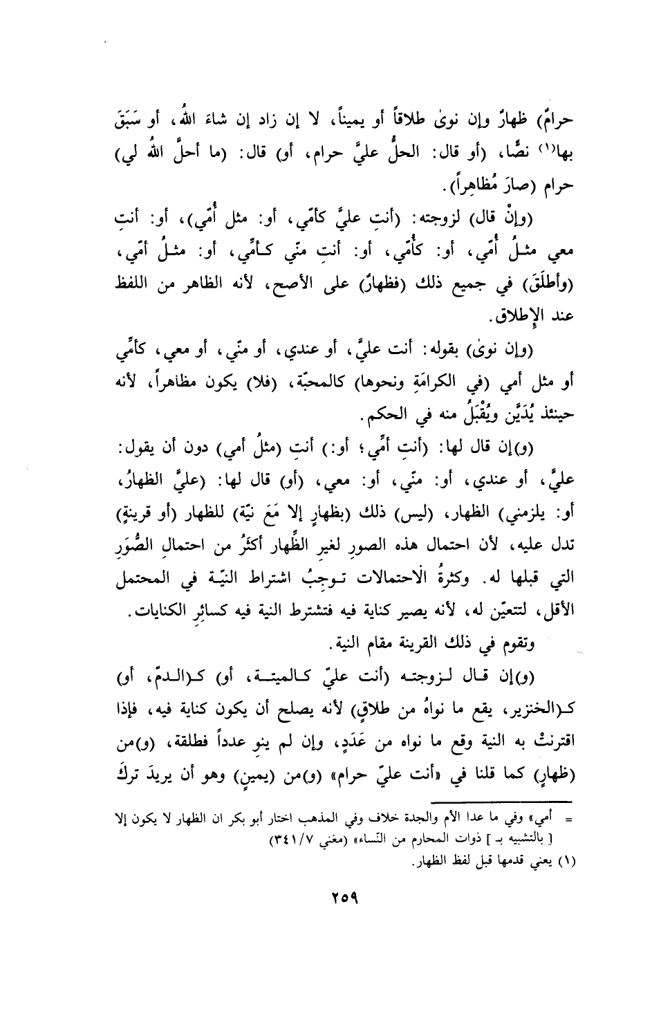 = أمي" وفي ما عدا الأم والجدة خلاف وفي المذهب اختار أبو بكر ان الظهار لا يكون إلا [بالتشبيه بـ] ذوات المحارم من النّساء" (مغني 7/ 341)