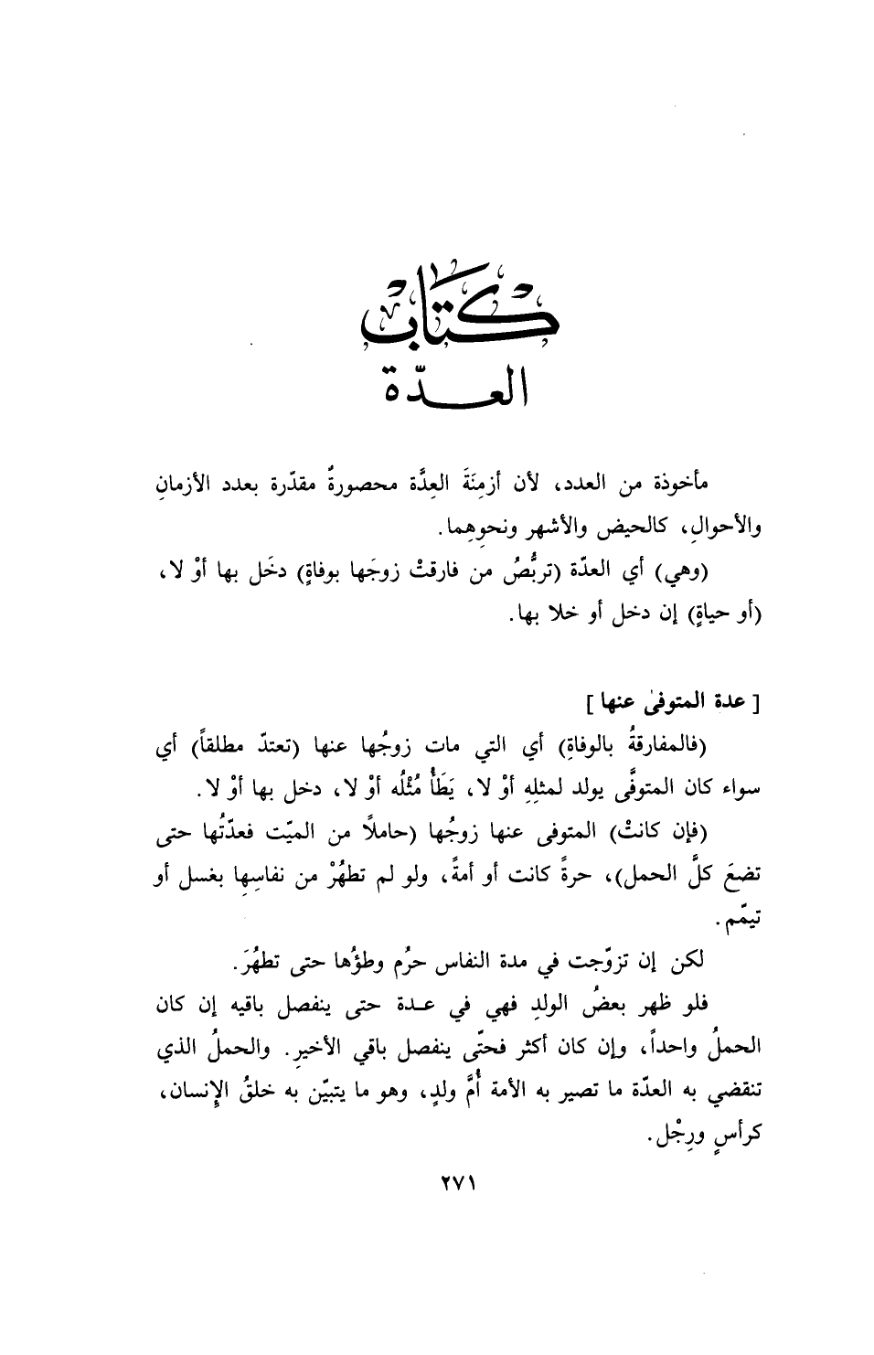 (فإن كانتْ) المتوفى عنها زوجُها (حاملاً من الميت فعدّتُها حتى تضعَ كلَّ الحمل)، حرةً كانت أو أمةً، ولو لم تطهُرْ من نفاسِهِا بغسل أو تيمَّم.