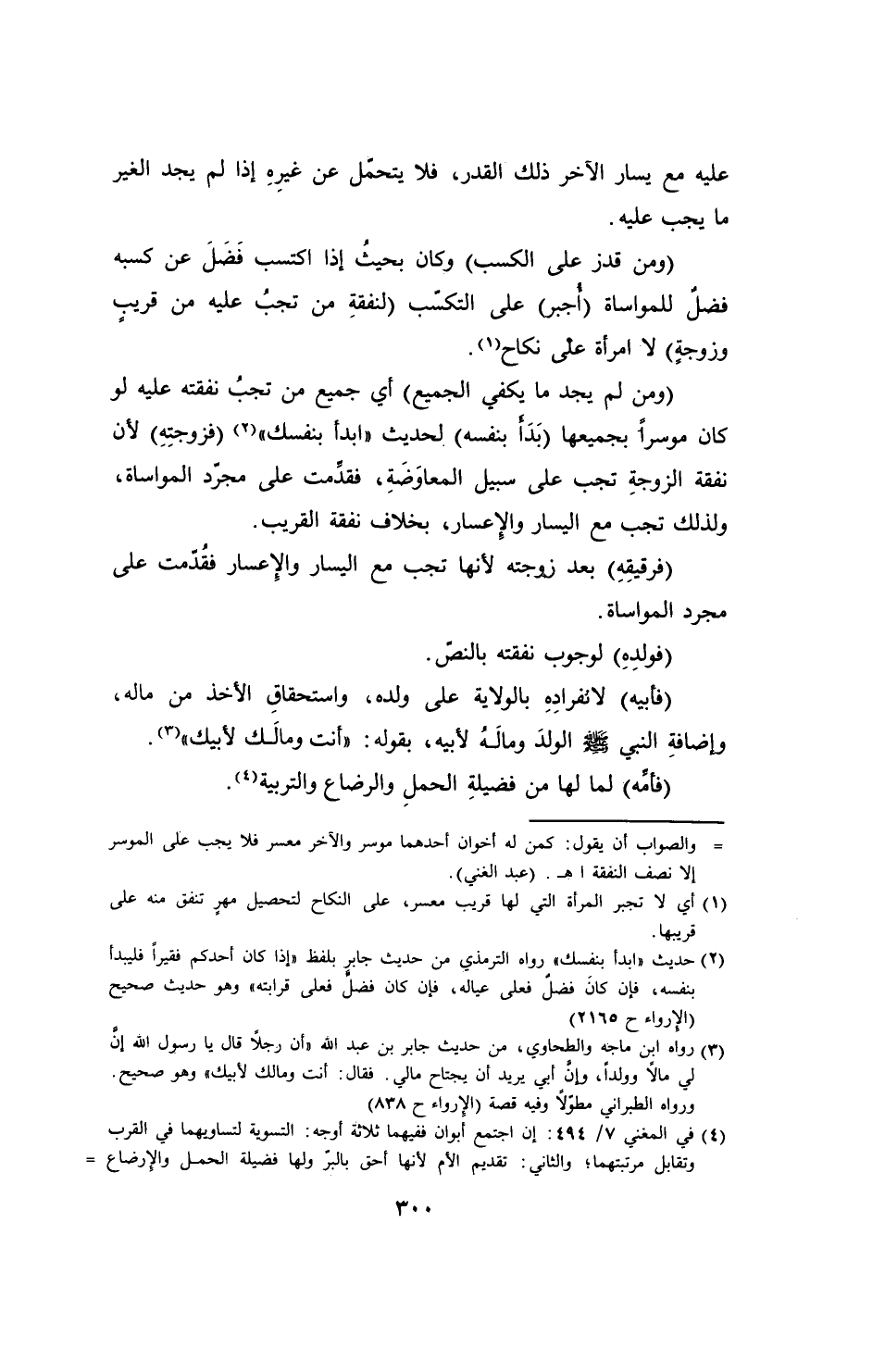 (¬2) حديث "ابدأ بنفسك" رواه الترمذي من حديث جابر بلفظ "إذا كان أحدكم فقيراً فليبدأ بنفسه، فإن كانَ فضلٌ فعلى عياله، فإن كان فضلٌ فعلى قرابته" وهو حديث صحيح (الإرواء ح 2165)