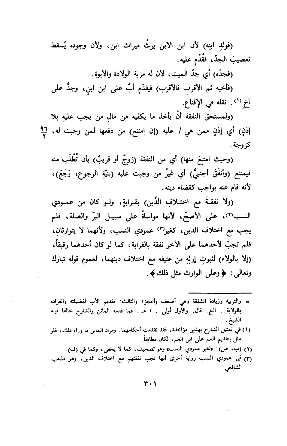 (¬3) في عمودي النسب رواية أخرى أنها تجب نفقتهم مع اختلاف الدين، وهو مذهب الشافعي.