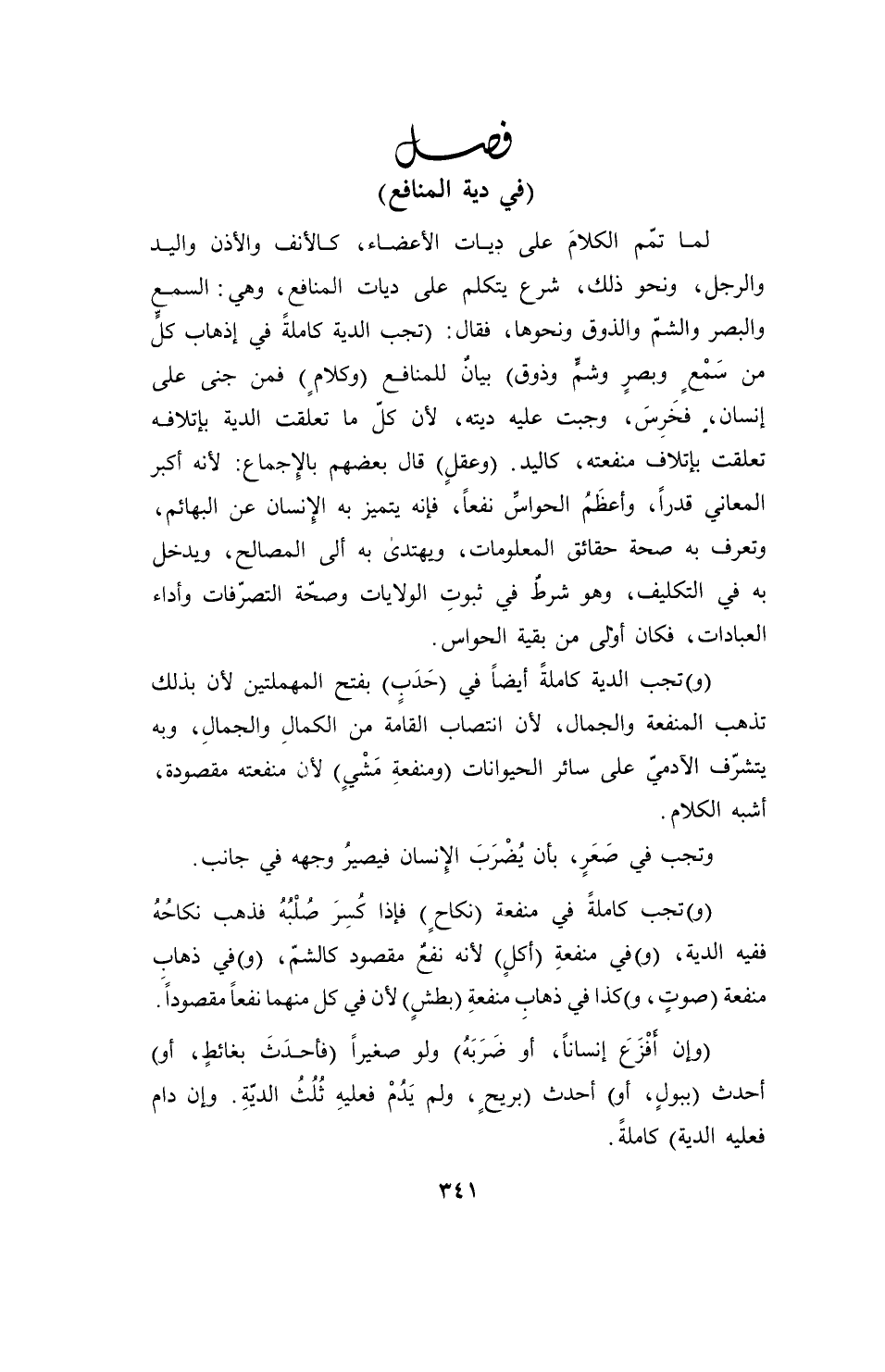 فصل (في دية المنافع)