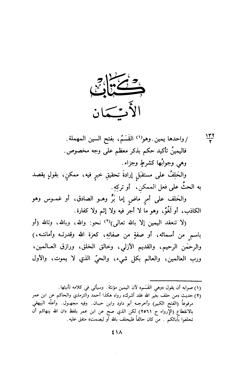 (¬2) حديث "من حلف بغير الله فقد أشرك" رواه هكذا أحمد والترمذي والحاكم عن ابن عمر مرفوعاً (الفتح الكبير) وأخرجه أبو داود وابن حبان. وفيه مجهول. وأعلّه البيهقي بالانقطاع (الإِرواء ح 2561) لكن الذي صح عن ابن عمر بلفظ "إن الله ينهاكم أن تحلفوا بآبائكم. من كان حالفاً فليحلف بالله أو ليصمت" متفق عليه.