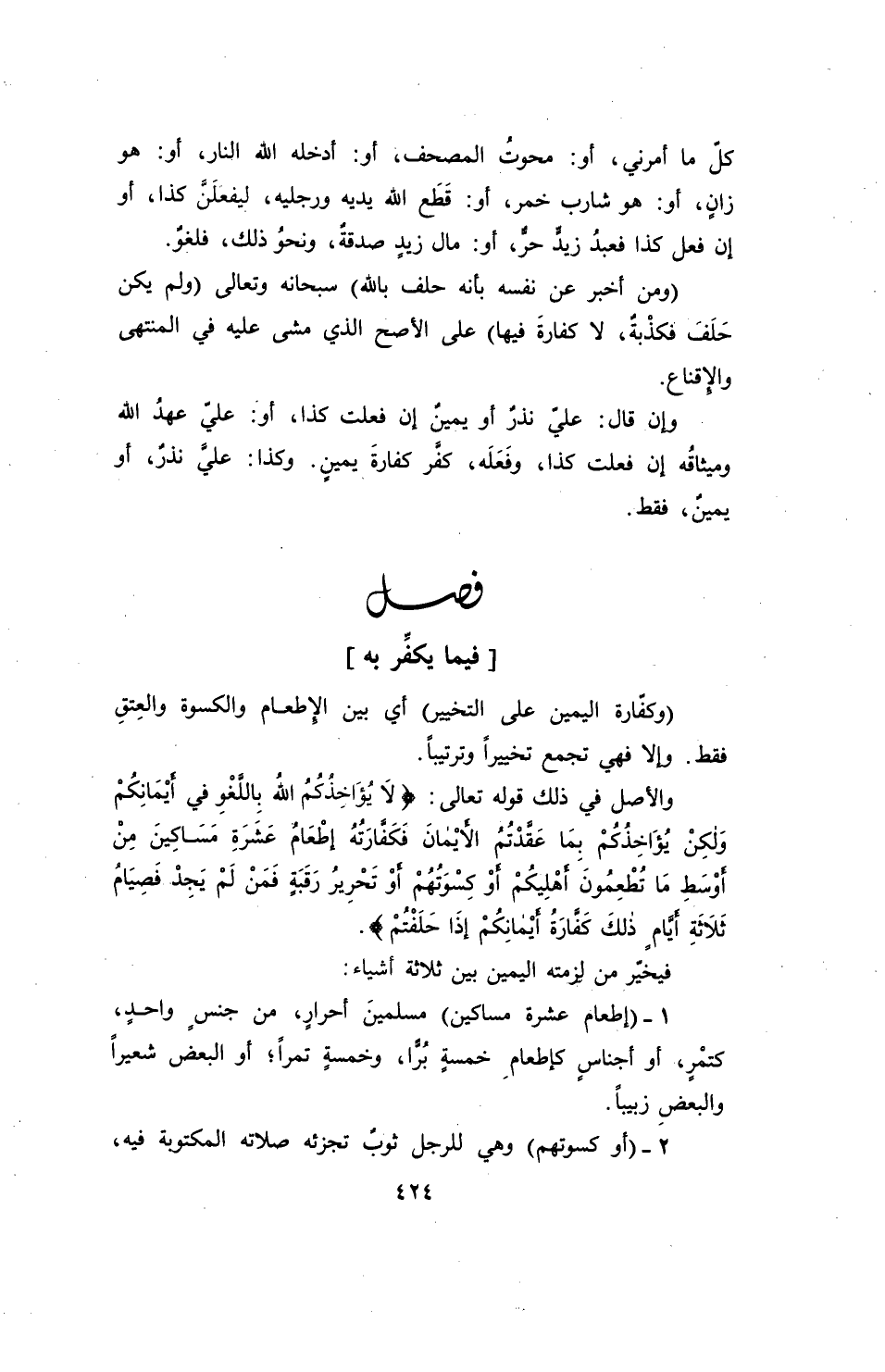 1 - (إطعام عشرة مساكين) مسلمينَ أحرارٍ، من جنسٍ واحدٍ، كتمْرٍ، أو أجناسٍ كإطعامِ خمسةٍ بُرًّا، وخمسةٍ تمراً؛ أو البعض شعيراً والبعضِ زبيباً.