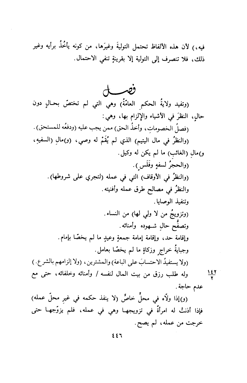 (وتفيد ولايةُ الحكمِ العامةُ) وهي التي لم تختصّ بحالٍ دون حالٍ، النظرَ في الأشياء والإلزام بها، وهي: