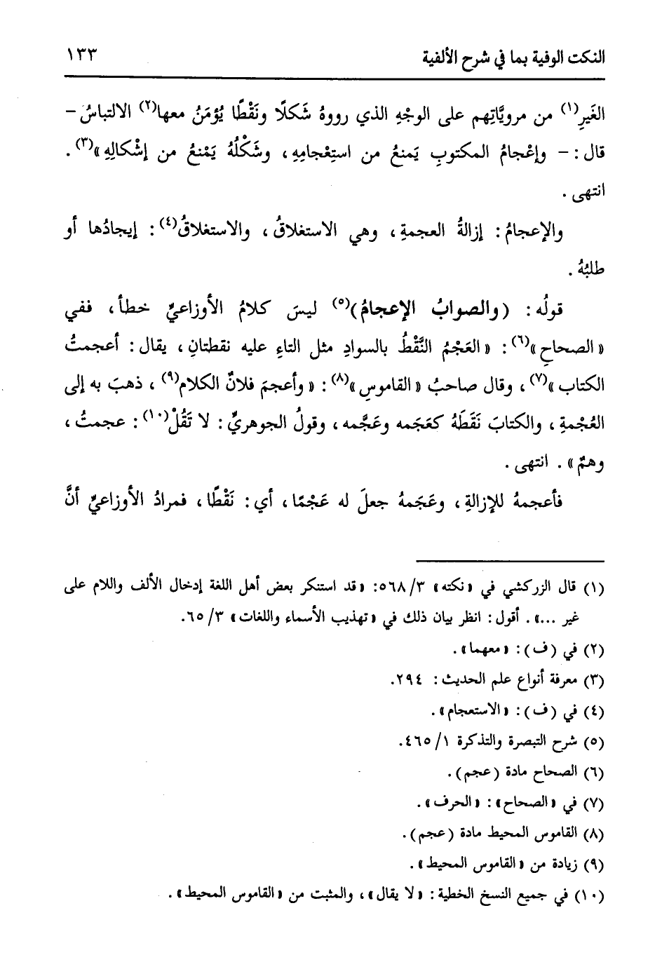 قولهُ: (والصوابُ الإعجامُ) (¬5) ليسَ كلامُ الأوزاعيِّ خطأ ففي " الصحاحِ" (¬6): ((العَجْمُ النَقْطُ بالسوادِ مثل التاءِ عليه نقطتانِ، يقال: أعجمتُ الكتاب)) (¬7)، وقال صاحبُ " القاموسِ " (¬8): ((وأعجمَ فلانٌ الكلام (¬9) ذهبَ به إلى العُجْمةِ، والكتابَ نَقَطَهُ كعَجَمه وعَجَّمه، وقولُ الجوهريِّ: لا تَقُلْ (¬10): عجمتُ، وهمٌ)). انتهى.