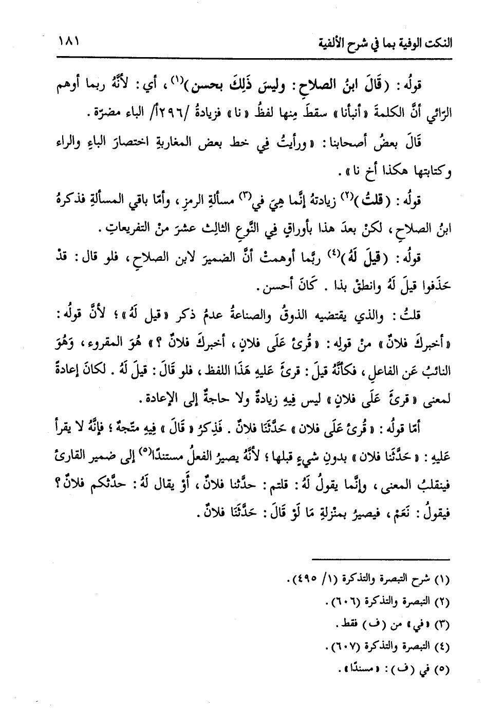 قولهُ: (قيلَ لَهُ) (¬4) ربَّما أوهمتْ أنَّ الضميرَ لابن الصلاحِ، فلو قال: قدْ حَذَفوا قيلَ لَهُ وانطقْ بذا كَانَ أحسن.