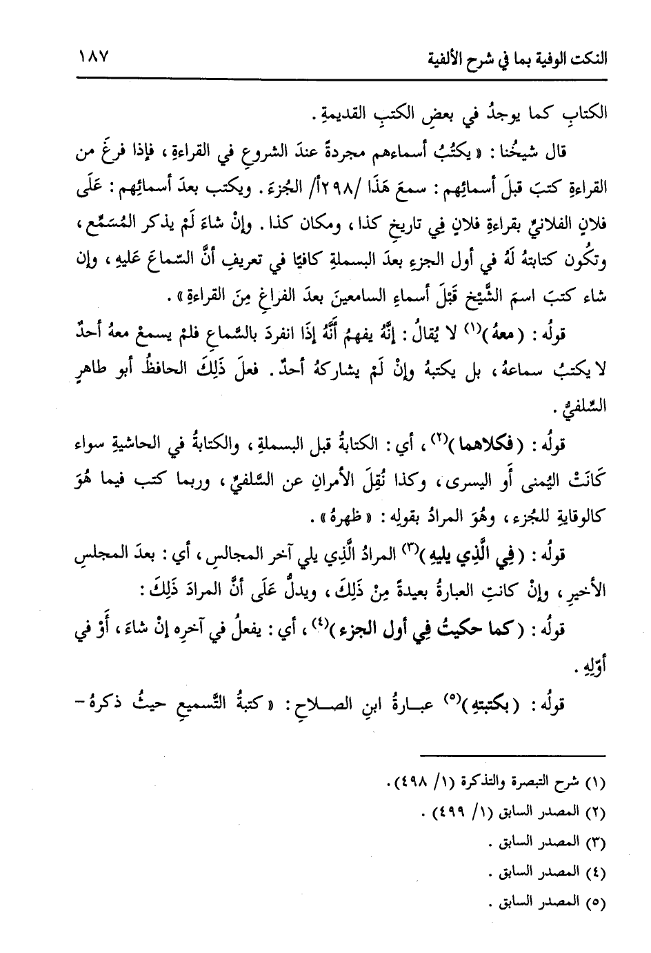 (¬5) شرح التبصرة والتذكرة 1/ 499.