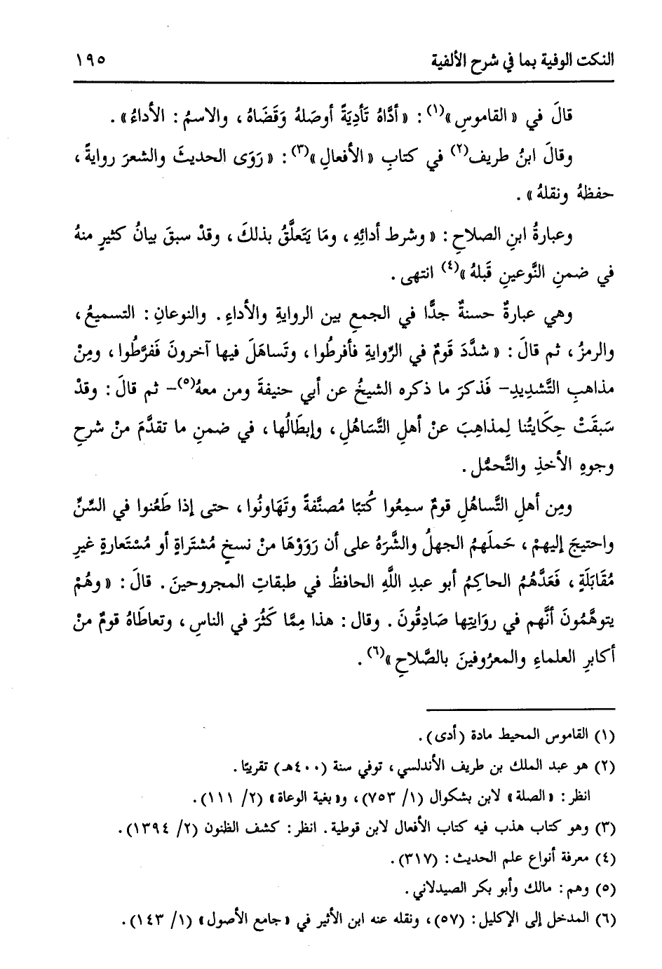 وعبارةُ ابنِ الصلاحِ: ((وشرط أدائِهِ، ومَا يَتَعلَّقُ بذلكَ، وقدْ سبقَ بيانُ كثيرٍ منهُ في ضمنِ النَّوعينِ قَبلهُ)) (¬4). انتهى.