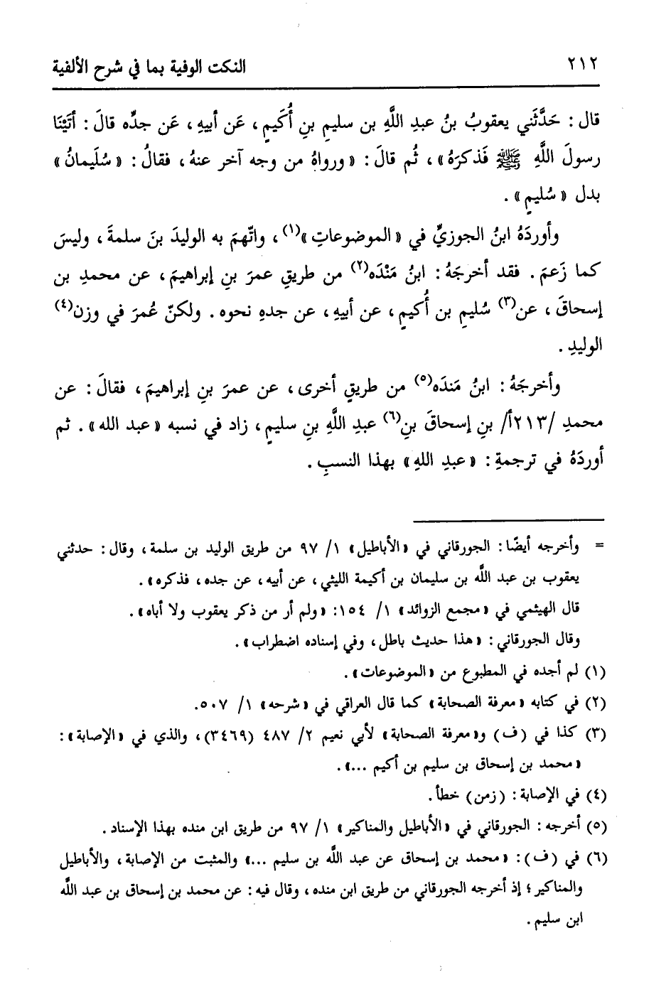 قال: حَدَّثَني يعقوبُ بنُ عبدِ اللهِ بنِ سليمِ بنِ أُكَيمٍ، عَن أبيهِ، عَن جدهِ قالَ: أتَيْنَا رسولَ اللهِ - صلى الله عليه وسلم - فَذكرَهُ))، ثُم قالَ: ((ورواهُ من وجه آخر عنهُ، فقالُ: ((سُلَيمانُ)) بدل ((سُليمٍ)).