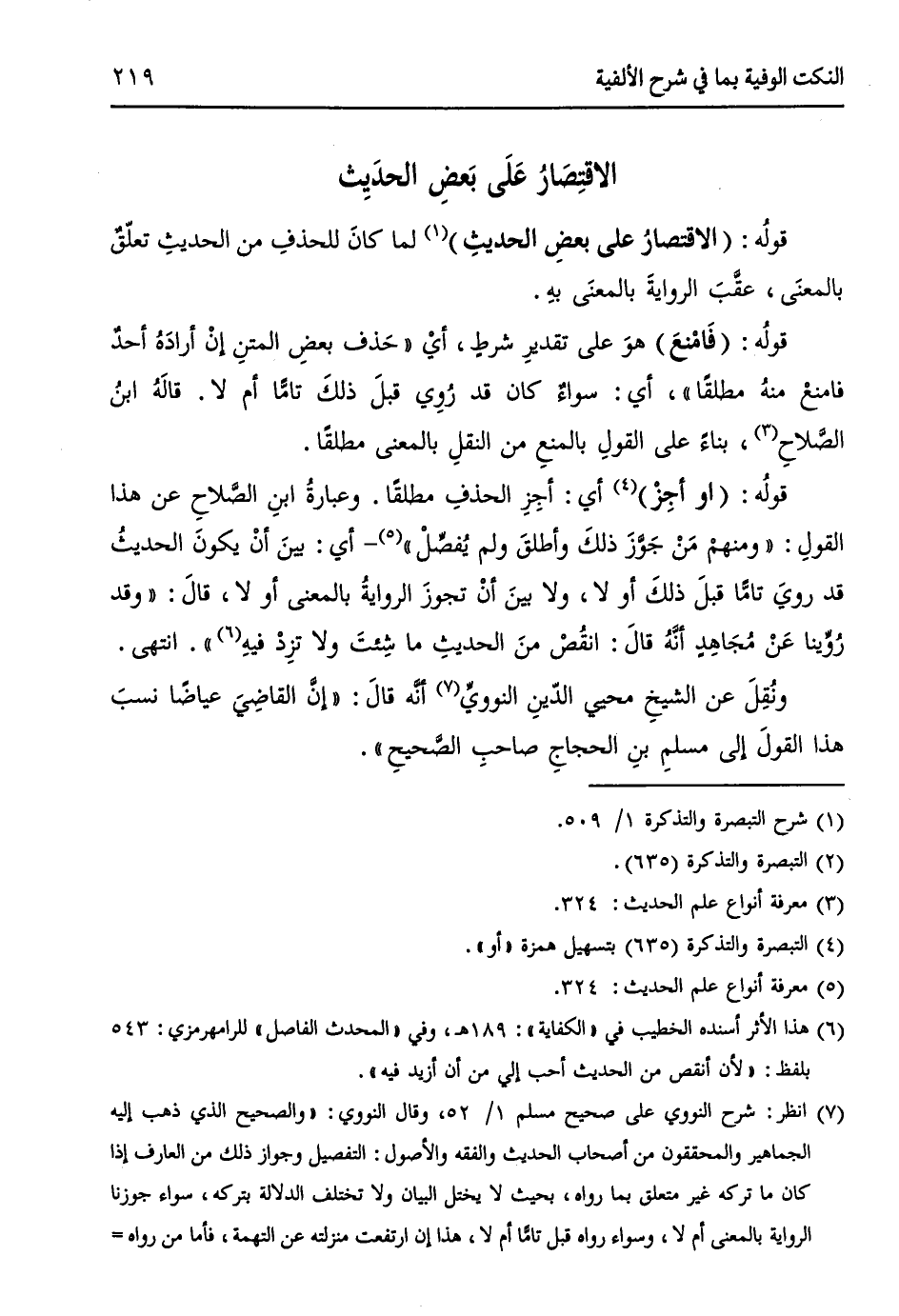 (¬7) انظر: شرح النووي على صحيح مسلم 1/ 52، وقال النووي: ((والصحيح الذي ذهب إليه الجماهير والمحققون من أصحاب الحديث والفقه والأصول: التفضيل وجواز ذلك من العارف إذا كان ما تركه غير متعلق بما رواه، بحيث لا يختل البيان ولا تختلف الدلالة بتركه، سواء جوّزنا الرواية بالمعنى أم لا، وسواء رواه قَبْلُ تاماً أم لا؟ هذا إن ارتفعت منزلته عن التهمة، فأمّا من رواه =