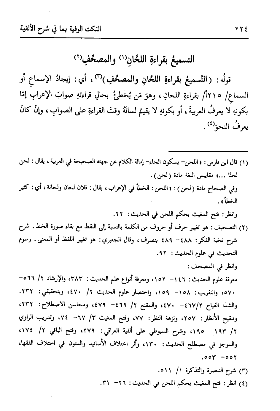 (¬4) انظر: فتح المغيث بحكم اللحن في الحديث: 26 - 31.