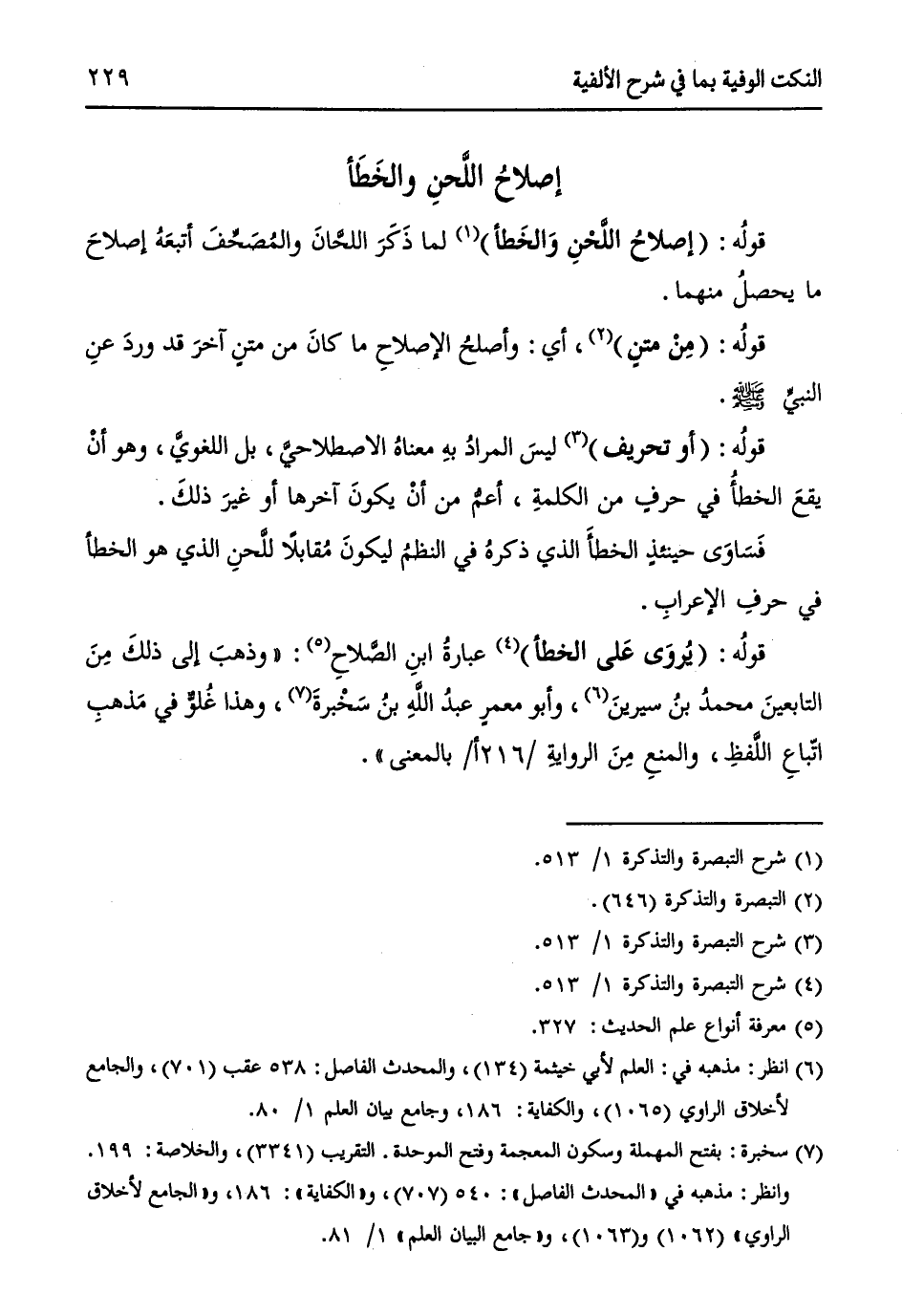قولُهُ: (إصلاحُ اللَّحْنِ وَالخَطأِ) (¬1) لما ذَكَرَ اللحَّانَ والمُصَحِّفَ أتبعَهُ إصلاحَ ما يحصلُ منهما.