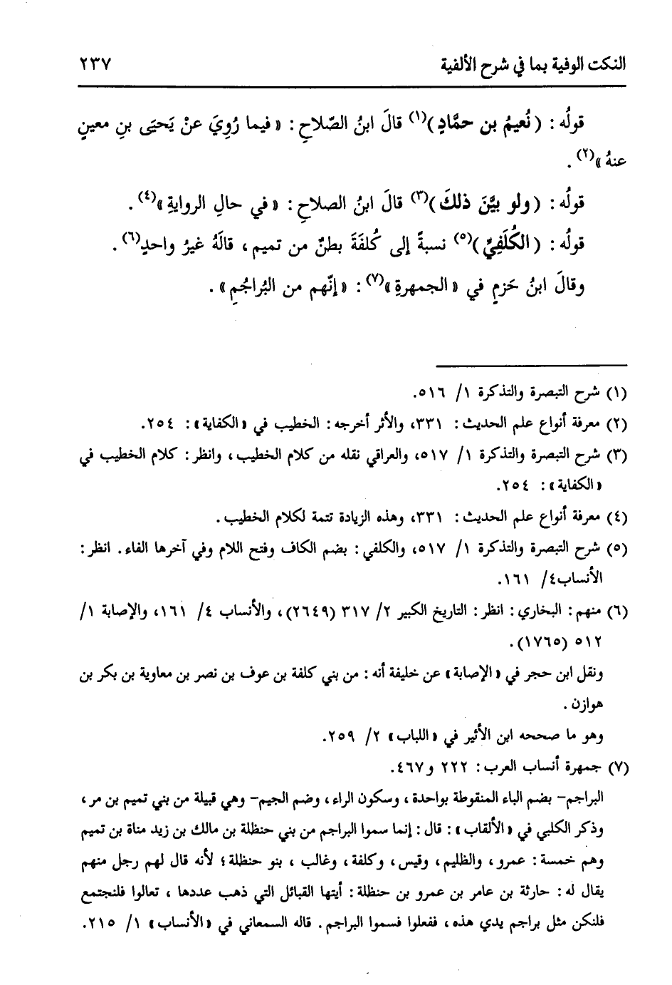 (¬5) شرح التبصرة والتذكرة 1/ 517، والكُلَفي: بضم الكاف وفتح اللام وفي آخرها الفاء. انظر: الأنساب 4/ 161.