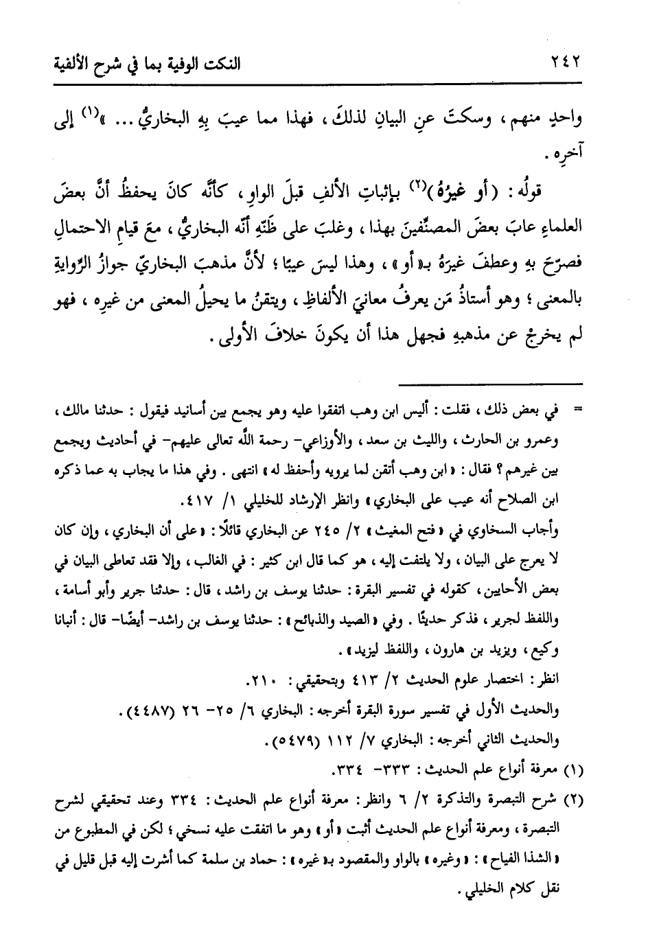 (¬2) شرح التبصرة والتذكرة 2/ 6، وانظر: معرفة أنواع علم الحديث: 334 وعند تحقيقي لشرح التبصرة، ومعرفة أنواع علم الحديث أثبتت ((أو)) وهو ما اتفقت عليه نسخي؛ لكن في المطبوع من الشذا الفياح ((وغيره)) بالواو والمقصود بـ ((غيره)): حماد بن سلمة كما أشرت إليه قبل قليل في نقل كلام الخليلي.