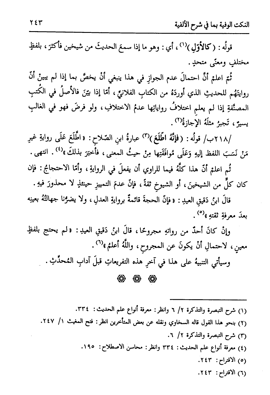 (¬1) شرح التبصرة والتذكرة 2/ 6، وانظر: معرفة أنواع علم الحديث: 334.