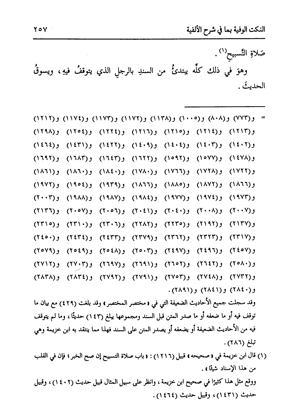 صَلاةِ التَّسبيحِ (¬1). وهوَ في ذلك كلِّه يبتدئُ من السندِ بالرجلِ الذي يتوقفُ فيهِ، ويسوقُ الحديثَ.