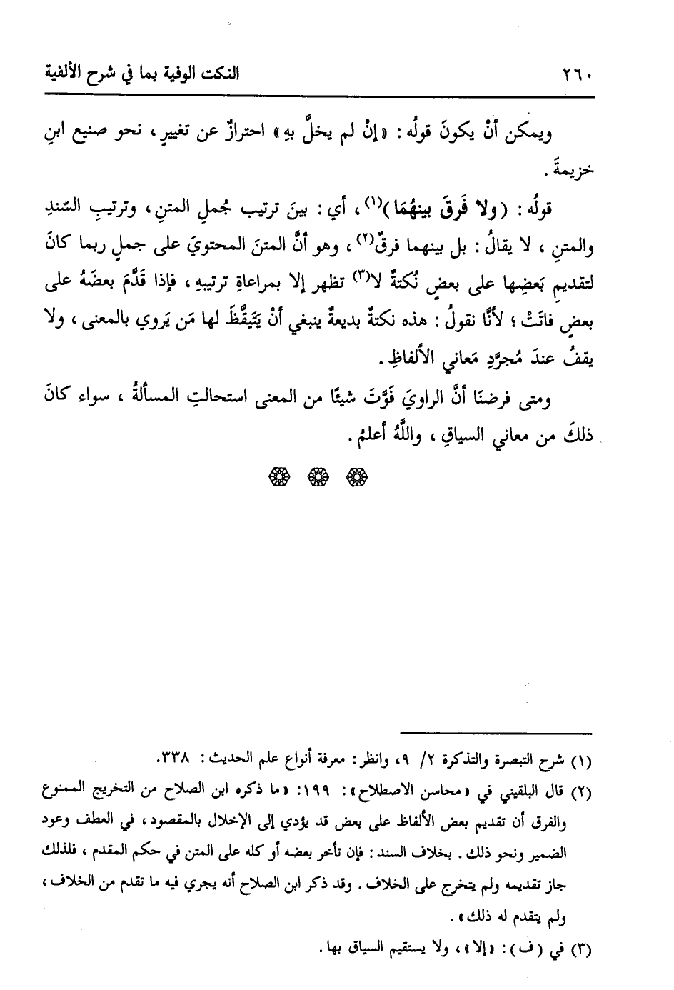 (¬1) شرح التبصرة والتذكرة 2/ 9، وانظر: معرفة أنواع علم الحديث: 338.