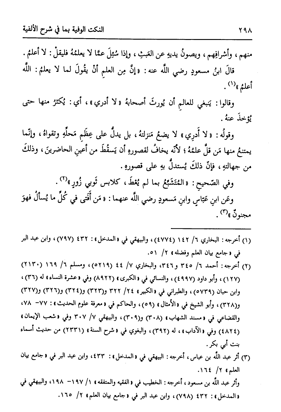 قالَ ابنُ مسعودٍ - رضي الله عنه -: ((إنَّ مِن العلمِ أنْ يقُولَ لما لا يعلمُ: اللهُ أعلمُ)) (¬1).