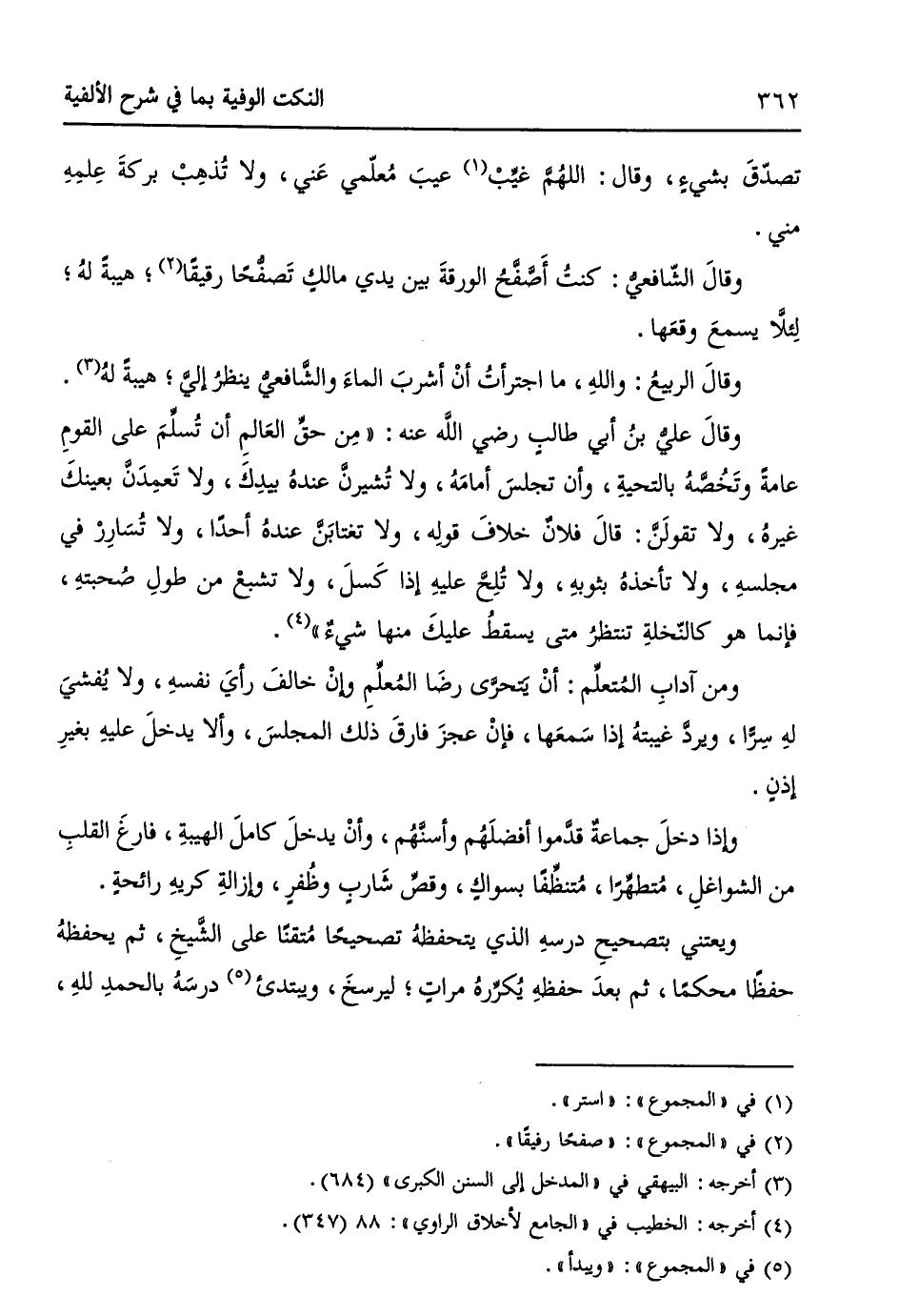 وقالَ الشّافعيُّ: كنتُ أَصَّفَّحُ الورقةَ بين يدي مالكٍ تَصفُّحاً رقيقاً (¬2)؛ هيبةً لهُ؛ لِئلاَّ يسمعُ وقعَها.