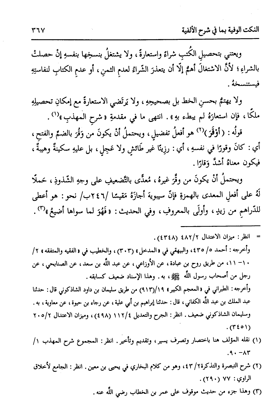 ولا يهتمُّ بحسنِ الخط بل بصحيحِهِ، ولا يَرتَضي الاستعارةَ مع إمكانِ تحصيلِهِ ملكاً، فإن استعارَهُ لم يبطء بهِ)). انتهى ما في مقدمةِ "شرحِ المهذبِ" (¬1).