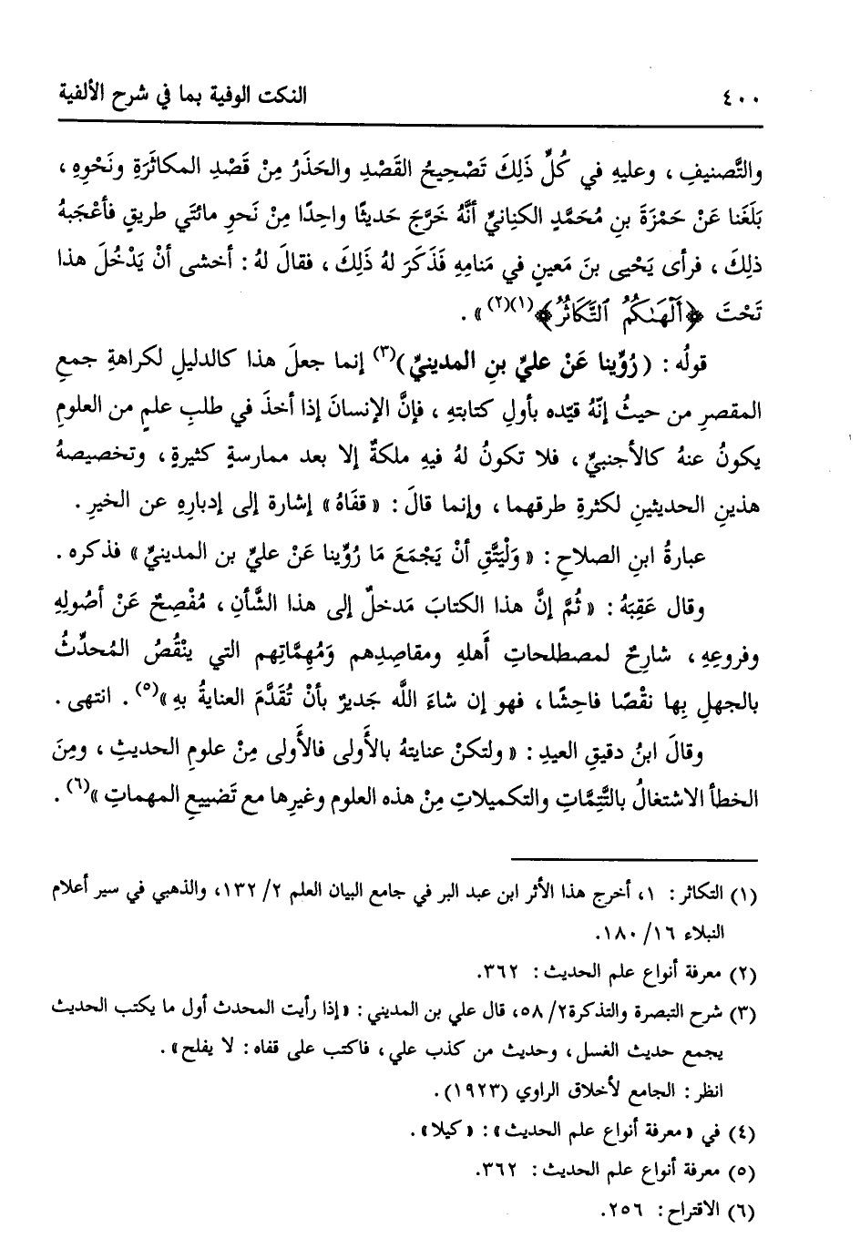 عبارةُ ابنِ الصلاحِ: ((وَلْيَتَّقِ أنْ يَجْمَعَ ما لَمْ يَتَأَهَّلْ بَعْدُ لاجْتِناءِ ثَمَرتِهِ واقْتِنَاصِ فائِدة جَمْعِهِ، لئَلا (¬4) يَكونَ حُكْمُهُ مَا رُوِّيْنا عَنْ عليِّ بن المدينيِّ)) فذكره.