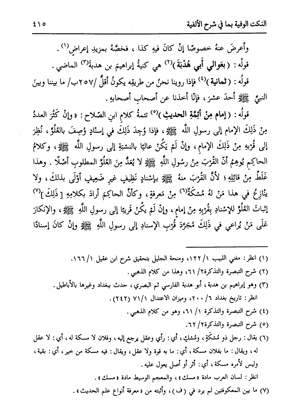 (¬4) شرح التبصرة والتذكرة 2/ 61، وهو من كلام الذهبي.
