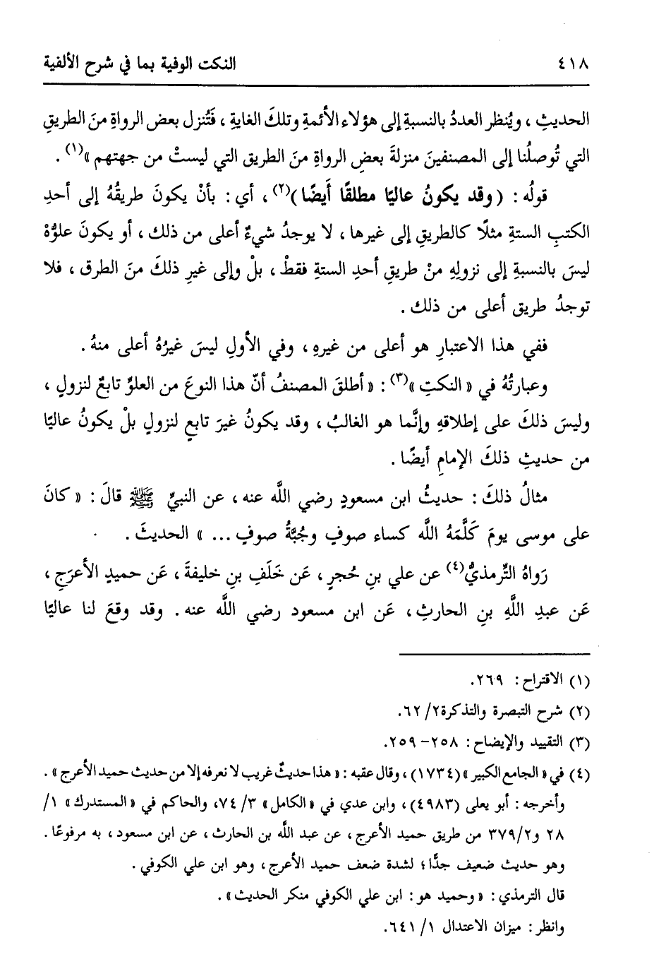 وعبارتُهُ في " النكتِ " (¬3): ((أطلقَ المصنفُ أنّ هذا النوعَ من العلوِّ تابعٌ لنزولٍ وليسَ ذلكَ على إطلاقهِ وإنَّما هو الغالبُ، وقد يكونُ غيرَ تابعٍ لنزولٍ بلْ يكونُ عالياً من حديثِ ذلكَ الإمامِ أيضاً.