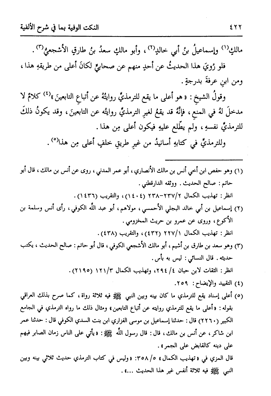 وقولُ الشيخِ: ((هو أعلى ما يقع للترمذيِّ روايتُهُ عن أتباعِ التابعينَ)) (¬4) كلامٌ لا مدخلَ لهُ في المنعِ، فإنَّهُ قد يقعُ لغيرِ الترمذيِّ روايتُه عن التابعينَ، وقد يكونُ ذلكَ للترمذيِّ نفسِهِ، ولم يطّلع عليهِ فيكون أعلى مِن هذا.