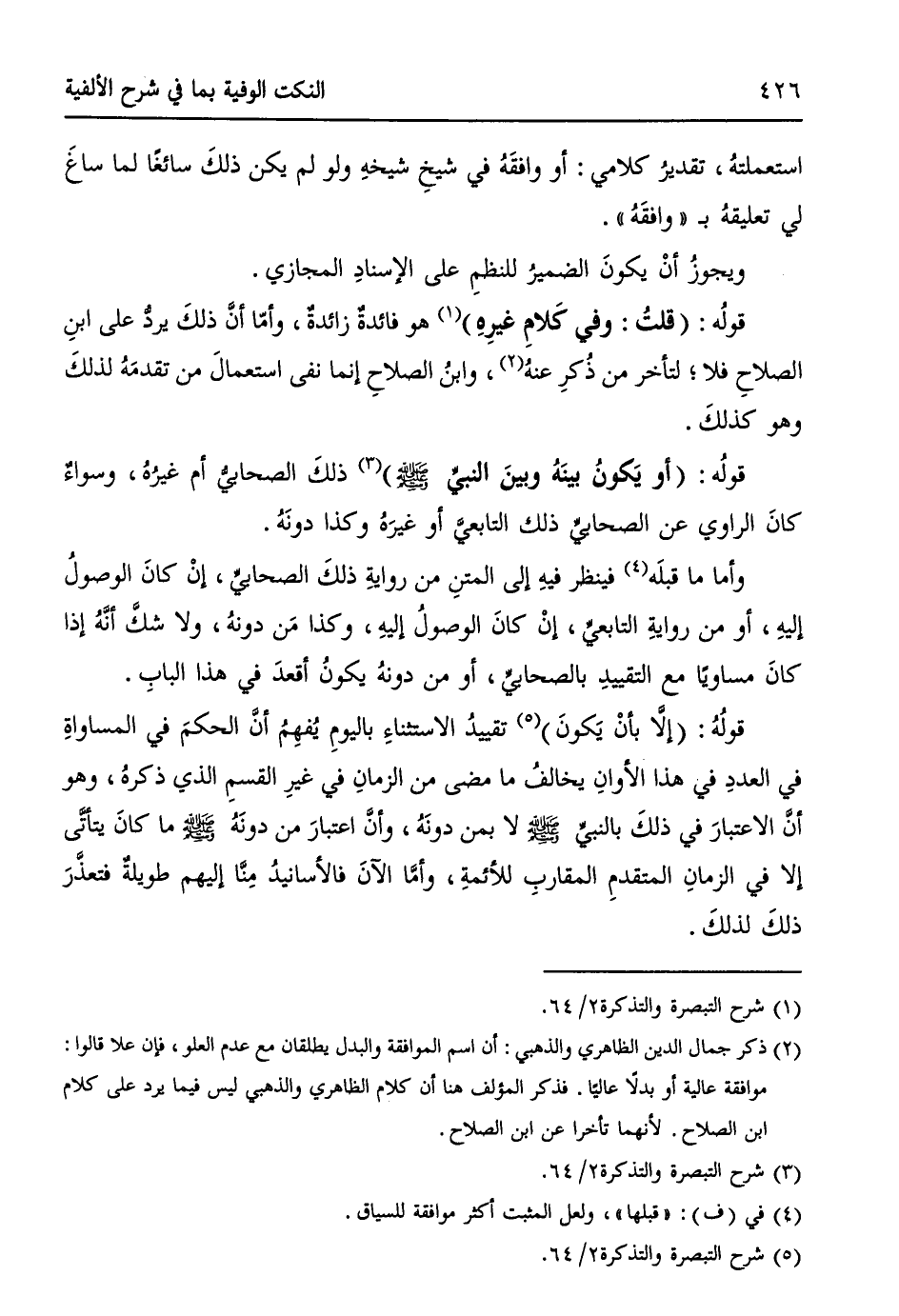 (¬2) ذكر جمال الدين الظاهري والذهبي: أن اسم الموافقة والبدل يطلقان مع عدم العلو، فإن علا قالوا: موافقة عالية أو بدلاً عالياً. فذكر المؤلف هنا أن كلام الظاهري والذهبي ليس فيما يرد على كلام ابن الصلاح. لأنهما تأخرا عن ابن الصلاح.