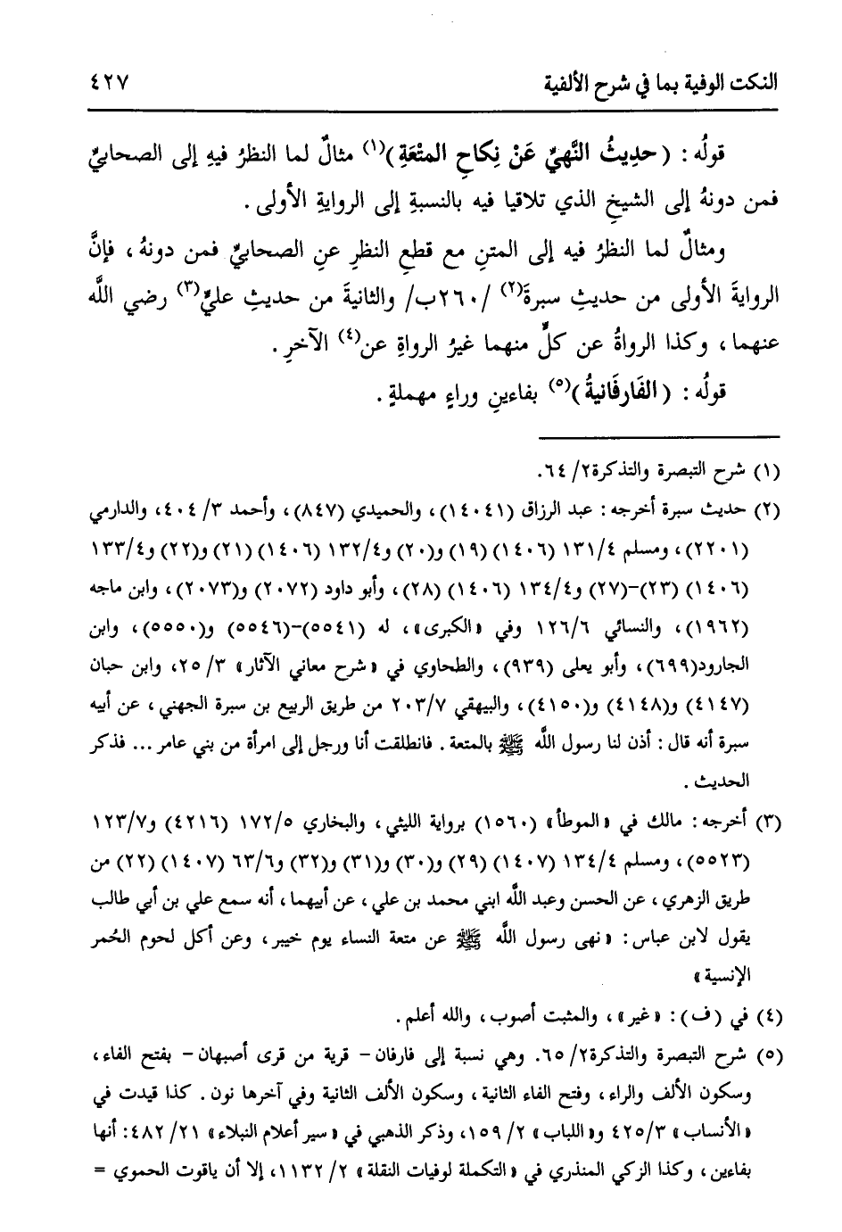 (¬5) شرح التبصرة والتذكرة 2/ 65. وهي نسبة إلى فارفان - قرية من قرى أصبهان - بفتح الفاء، وسكون الألف والراء، وفتح الفاء الثانية، وسكون الألف الثانية وفي آخرها نون. كذا قيدت في " الأنساب " 3/ 425 و" اللباب " 2/ 159، وذكر الذهبي في " سير أعلام النبلاء " 21/ 482: أنها بفاءين، وكذا ذكر الزكي المنذري في " التكملة لوفيات النقلة " 2/ 1132،