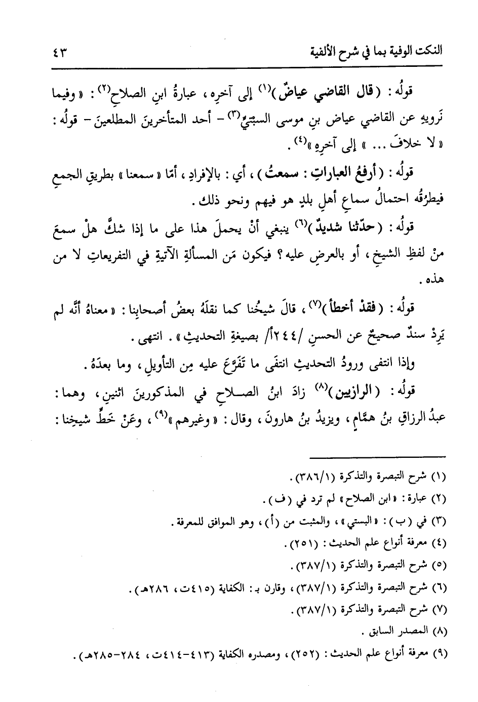 (¬6) شرح التبصرة والتذكرة 1/ 387، وقارن بـ: الكفاية (415ت، 286 هـ).