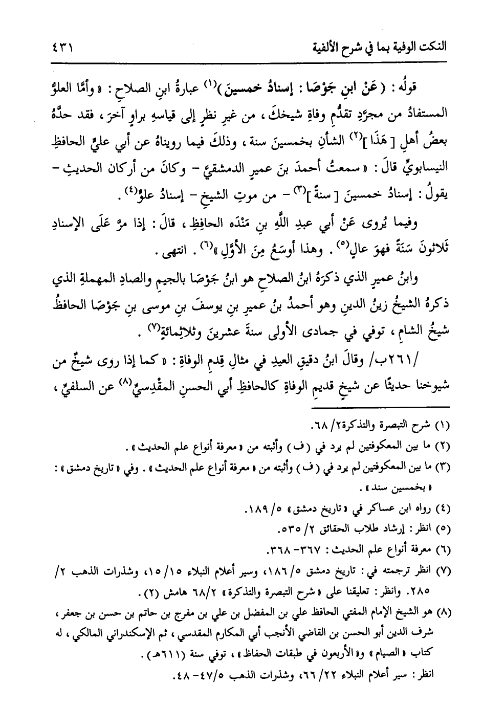 (¬7) انظر ترجمته في: تاريخ دمشق 5/ 186، وسير أعلام النبلاء 15/ 15، وشذرات الذهب 2/ 285. وانظر: تعليقنا على " شرح التبصرة والتذكرة " 2/ 68 هامش (2).