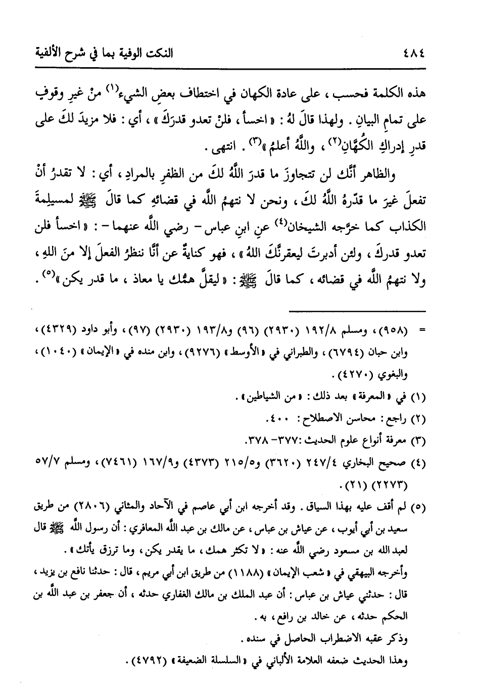 هذه الكلمة فحسب، على عادة الكهان في اختطاف بعضِ الشيء (¬1) منْ غيرِ وقوفٍ على تمامِ البيانِ. ولهذا قالَ لهُ: ((اخسأْ، فلنْ تعدو قدرَكَ))، أي: فلا مزيدَ لكَ على قدرِ إدراكِ الكُهَّانِ (¬2)، والله أعلمُ)) (¬3). انتهى.