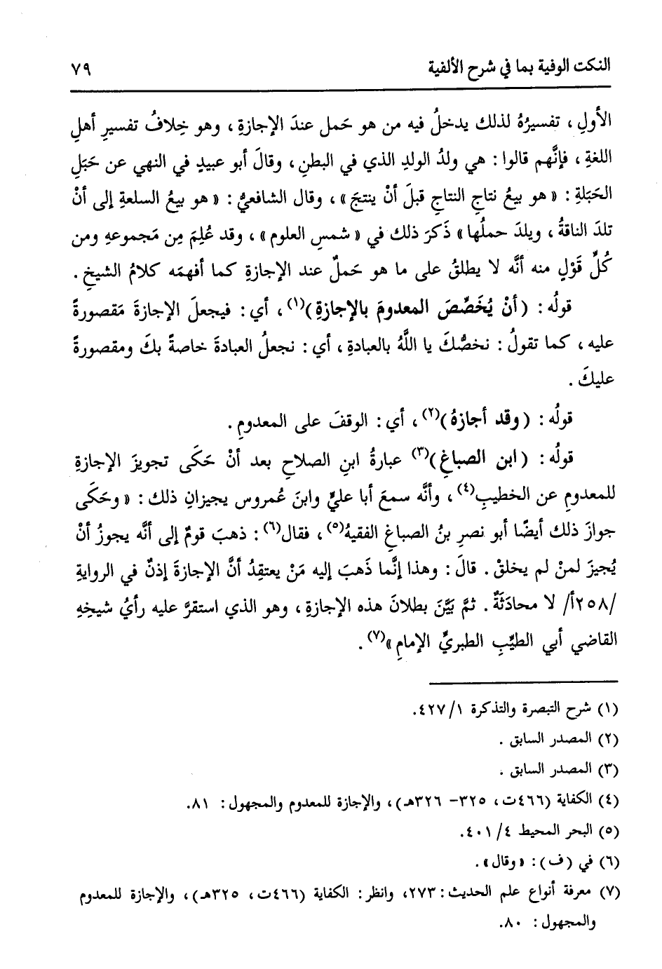 (¬7) معرفة أنواع علم الحديث: 273، وانظر: الكفاية (466ت، 325 هـ)، والإجازة للمعدوم والمجهول: 80.