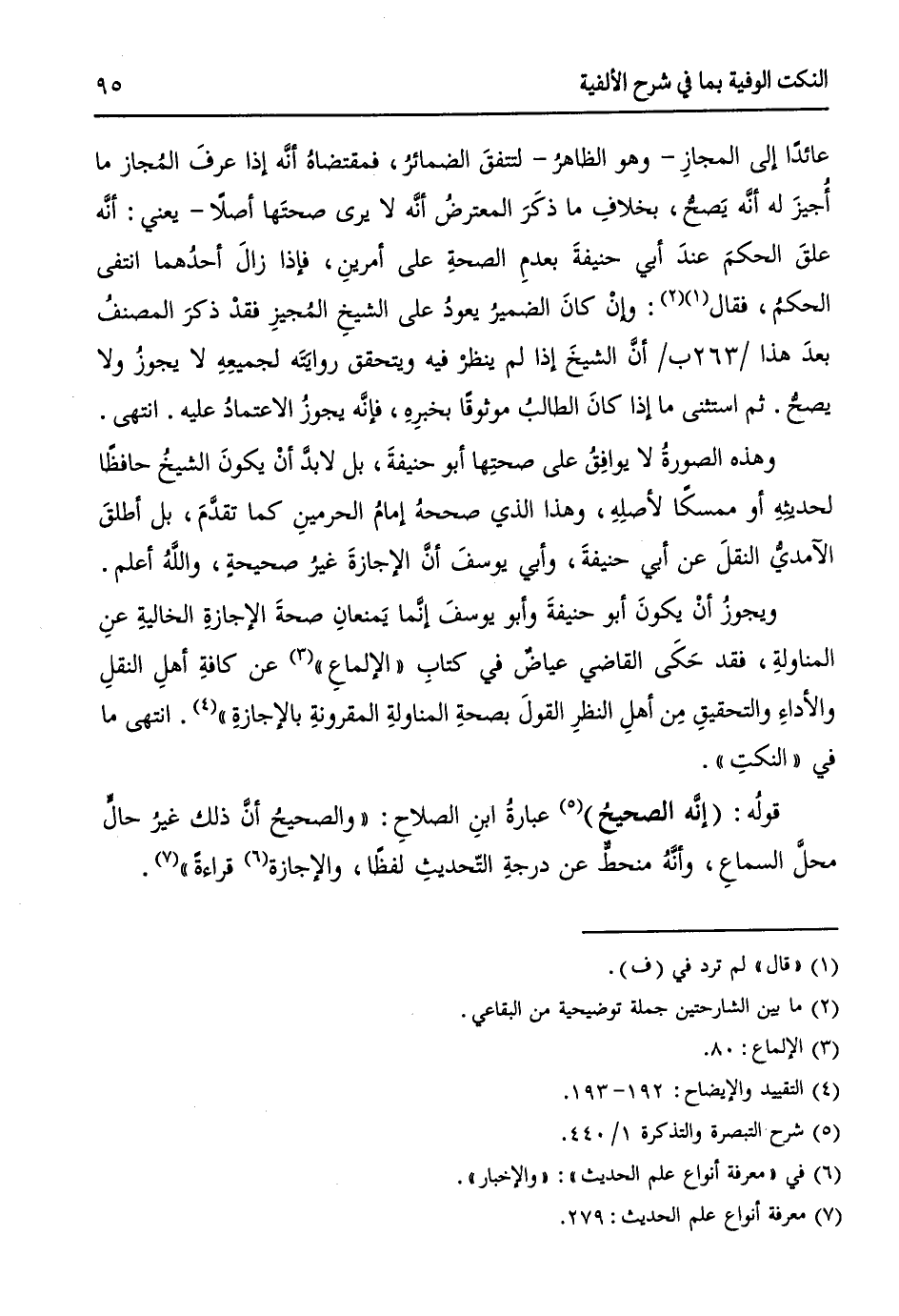 ويجوزُ أنْ يكونَ أبو حنيفة وأبو يوسفَ إنَّما يَمنعانِ صحةَ الإجازةِ الخاليةِ عنِ المناولةِ، فقد حَكَى القاضي عياضٌ في كتابِ " الإلماعِ " (¬3) عن كافةِ أهلِ النقلِ والأداءِ والتحقيقِ من أهلِ النظرِ القولَ بصحةِ المناولةِ المقرونةِ بالإجازةِ)) (¬4). انتهى ما في " النكتِ ".