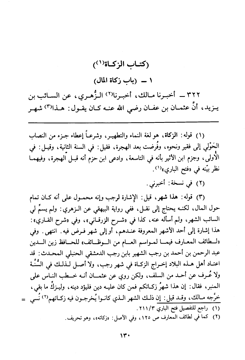 322 - أَخْبَرَنَا مَالِكٌ، أَخْبَرَنَا (¬2) الزُّهري، عَنِ السَّائِبِ بْنِ يَزِيدَ، أنَّ عُثْمَانَ بْنَ عَفَّانَ رَضِيَ اللَّهُ عَنْهُ كَانَ يقول: هذا (¬3) شهر