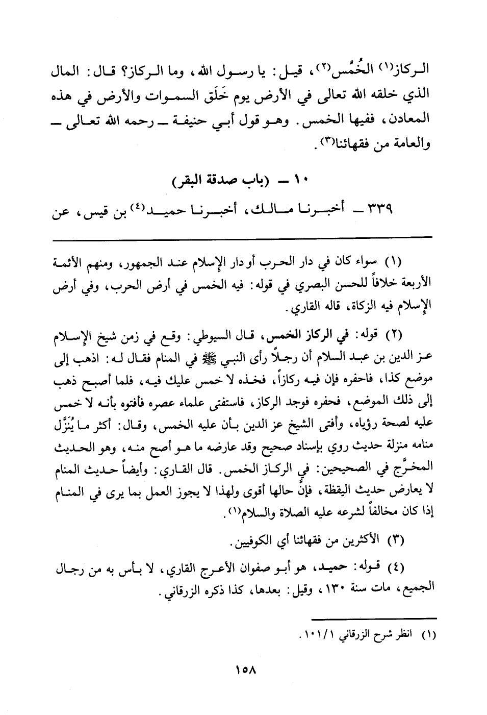 (¬2) قوله: في الركاز الخمس، قال السيوطي: وقع في زمن شيخ الإسلام عز الدين بن عبد السلام أن رجلاً رأى النبي صلى الله عليه وسلم في المنام فقال له: اذهب إلى موضع كذا، فاحفره فإن فيه ركازاً، فخذه لا خمس عليك فيه، فلما أصبح ذهب إلى ذلك الموضع، فحفره فوجد الركاز، فاستفتى علماء عصره فأفتوه بأنه لا خمس عليه لصحة رؤياه، وأفتى الشيخ عز الدين بأن عليه الخمس، وقال: أكثر ما يُنَزَّل منامه منزلة حديث روي بإسناد صحيح وقد عارضه ما هو أصح منه، وهو الحديث المخرَّج في الصحيحين: في الركاز الخمس. قال القاري: وأيضاً حديث المنام لا يعارض حديث اليقظة، فإنَّ حالها أقوى ولهذا لا يجوز العمل بما يرى في المنام إذا كان مخالفاً لشرعه عليه الصلاة والسلام (انظر شرح الزرقاني 1/101) .