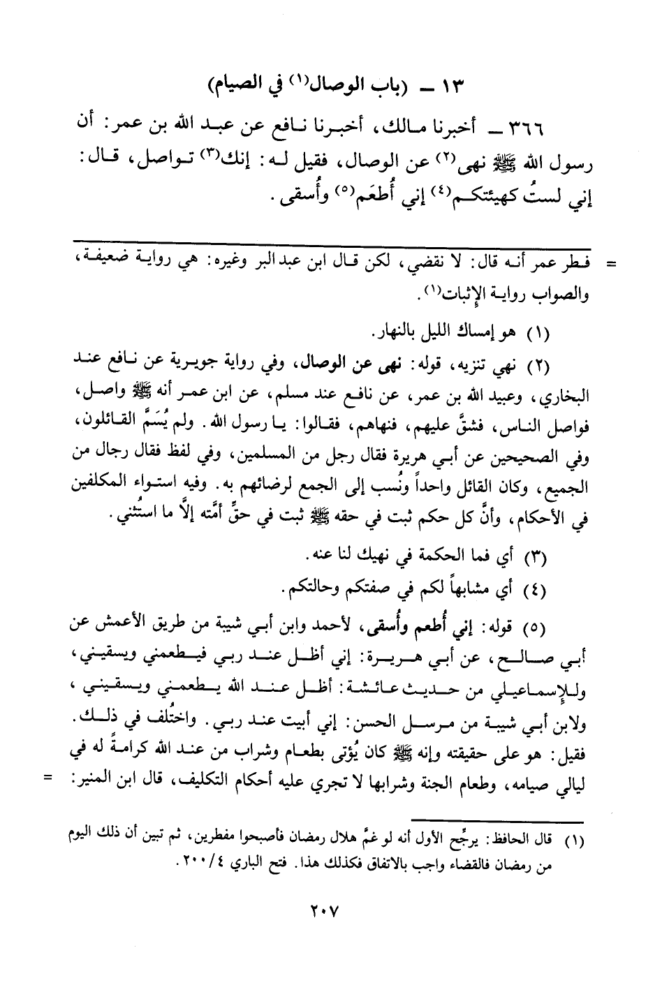 366 - أَخْبَرَنَا مَالِكٌ، أَخْبَرَنَا نافع عن عبد الله بن عمر: أن رَسُولَ اللَّهِ صَلَّى اللَّهُ عَلَيْهِ وَسَلَّمَ نَهَى (¬2) عَنِ الْوِصَالِ، فَقِيلَ لَهُ: إِنَّكَ (¬3) تُوَاصِلُ، قَالَ: إني لستُ كهيئتكم (¬4) إني أُطعَم (¬5) وأُسقى.